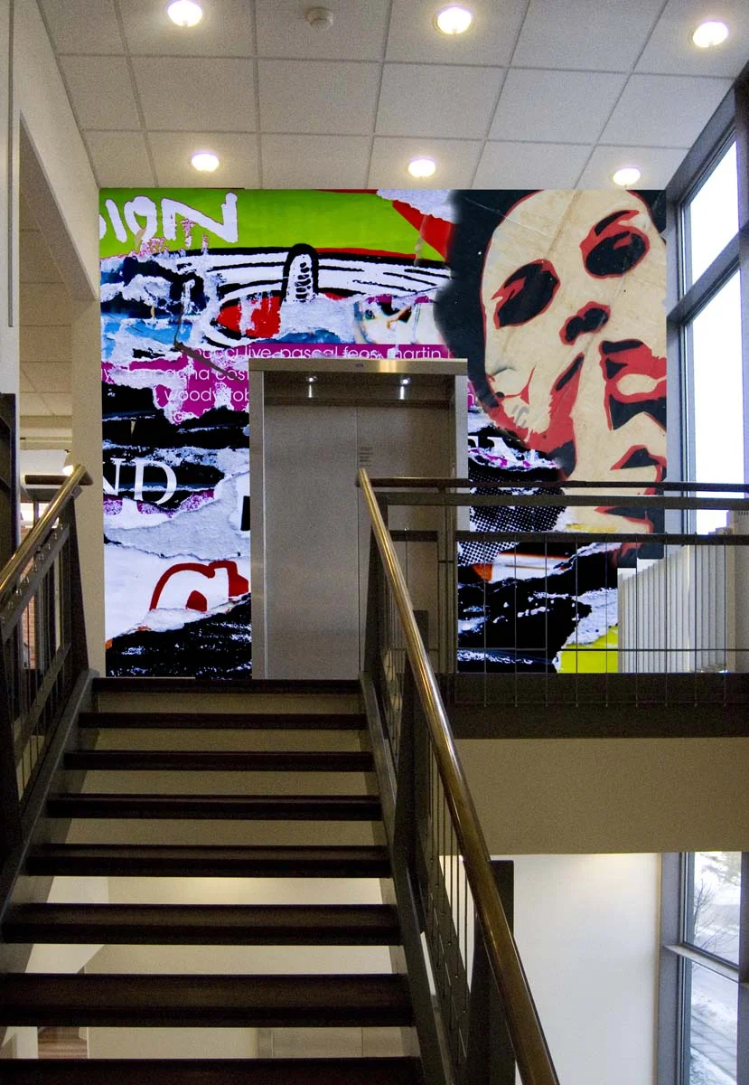 Medicinalfirma ønsker udsmykning i trappeportal. Billederne skal matche deres professionelle profil. De vælger at billederne skal tapetseres i rummene, for at give et helt nyt udtryk i de før lidt anonyme gennemgangsrum.